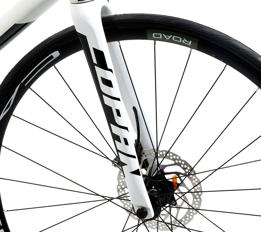 The Copán 2 is a performance endurance road bike. It is best suited as the upgrade bike for entry-level riders or for new riders that want something a little nicer that will grow with them. It has several features that make it one of the best bikes in its category including a full Shimano drivetrain (shifters, derailleurs, crankset, chain, and cassette), Tektro disc brakes, an X6 Aluminum frame (more on that in a second), and a full carbon fork and steerer.