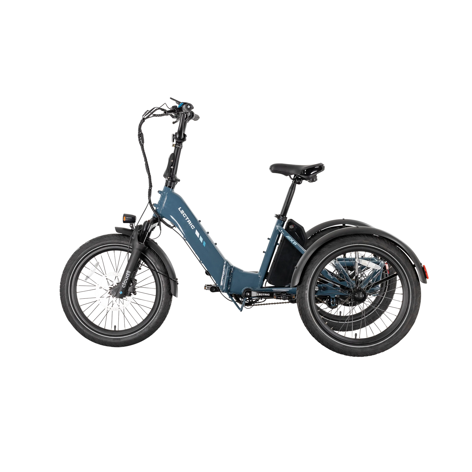 The Lectric XP Trike2 is freedom on three wheels! It accommodates a wide range of rider abilities and preferences with our lowest standover height ever of just 13.8 inches. Capable, comfortable, and completely foldable, the XP Trike2 is the best-selling electric trike in America. Now available in six new color options, the updated hydroformed frame has been redesigned with comfort and convenience in mind. Featuring our new Cloud 50 suspension fork for a smoother ride, a 9-degree stem position for improved posture, and an adjusted seating position for more stability. This ride is big on fun and easy on the joints!