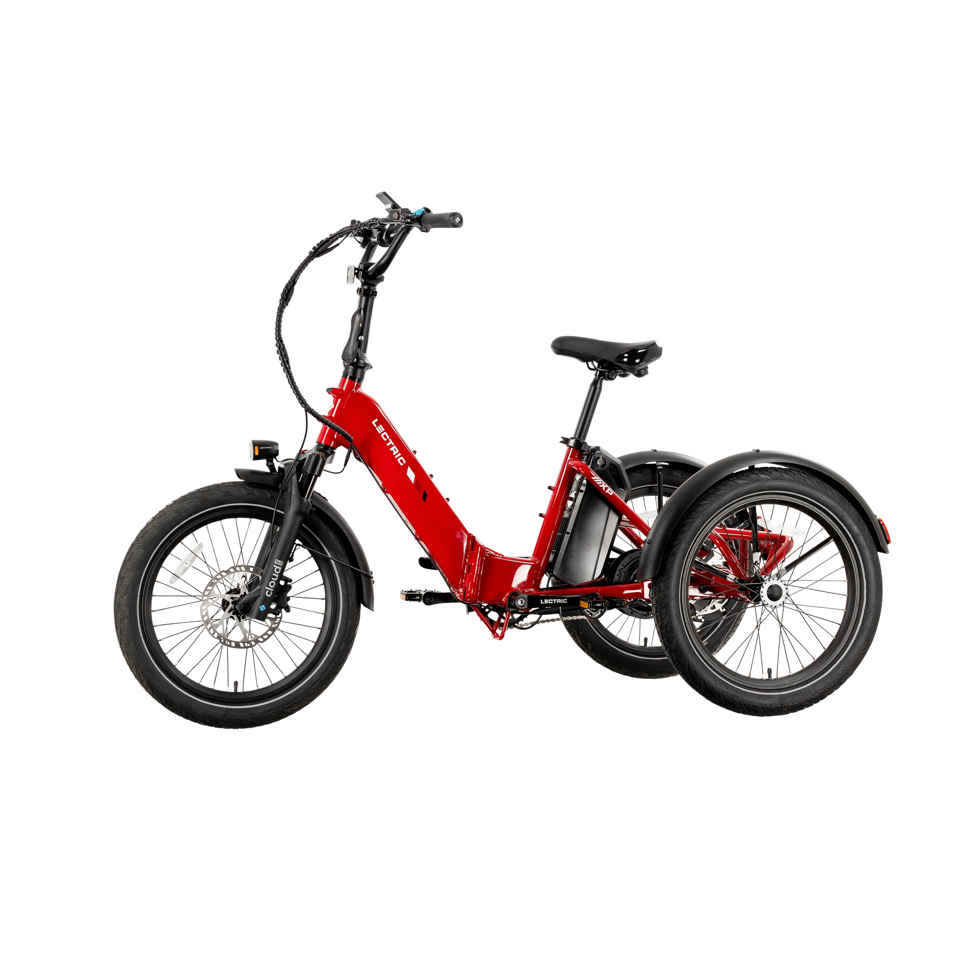 The Lectric XP Trike2 is freedom on three wheels! It accommodates a wide range of rider abilities and preferences with our lowest standover height ever of just 13.8 inches. Capable, comfortable, and completely foldable, the XP Trike2 is the best-selling electric trike in America. Now available in six new color options, the updated hydroformed frame has been redesigned with comfort and convenience in mind. Featuring our new Cloud 50 suspension fork for a smoother ride, a 9-degree stem position for improved posture, and an adjusted seating position for more stability. This ride is big on fun and easy on the joints!